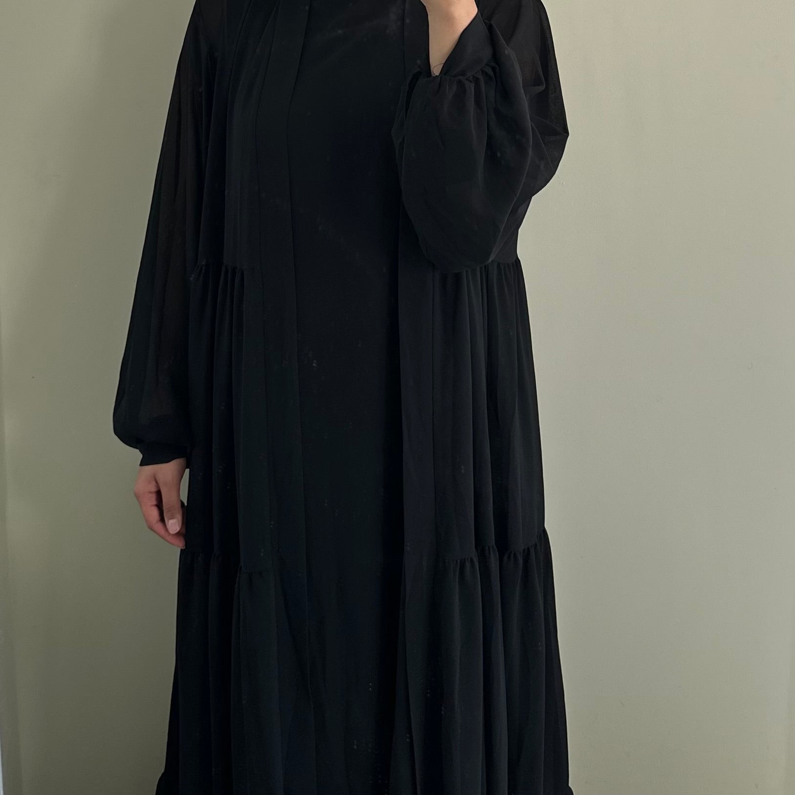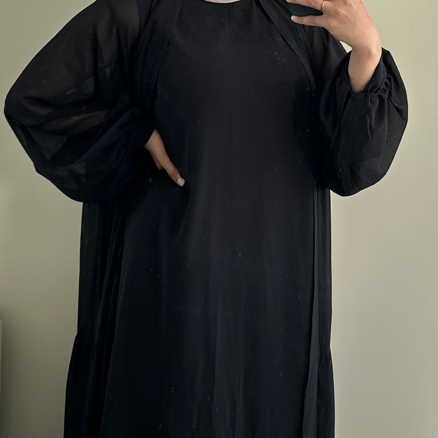 Comes with outter abaya, sleeveless underdress & belt.
