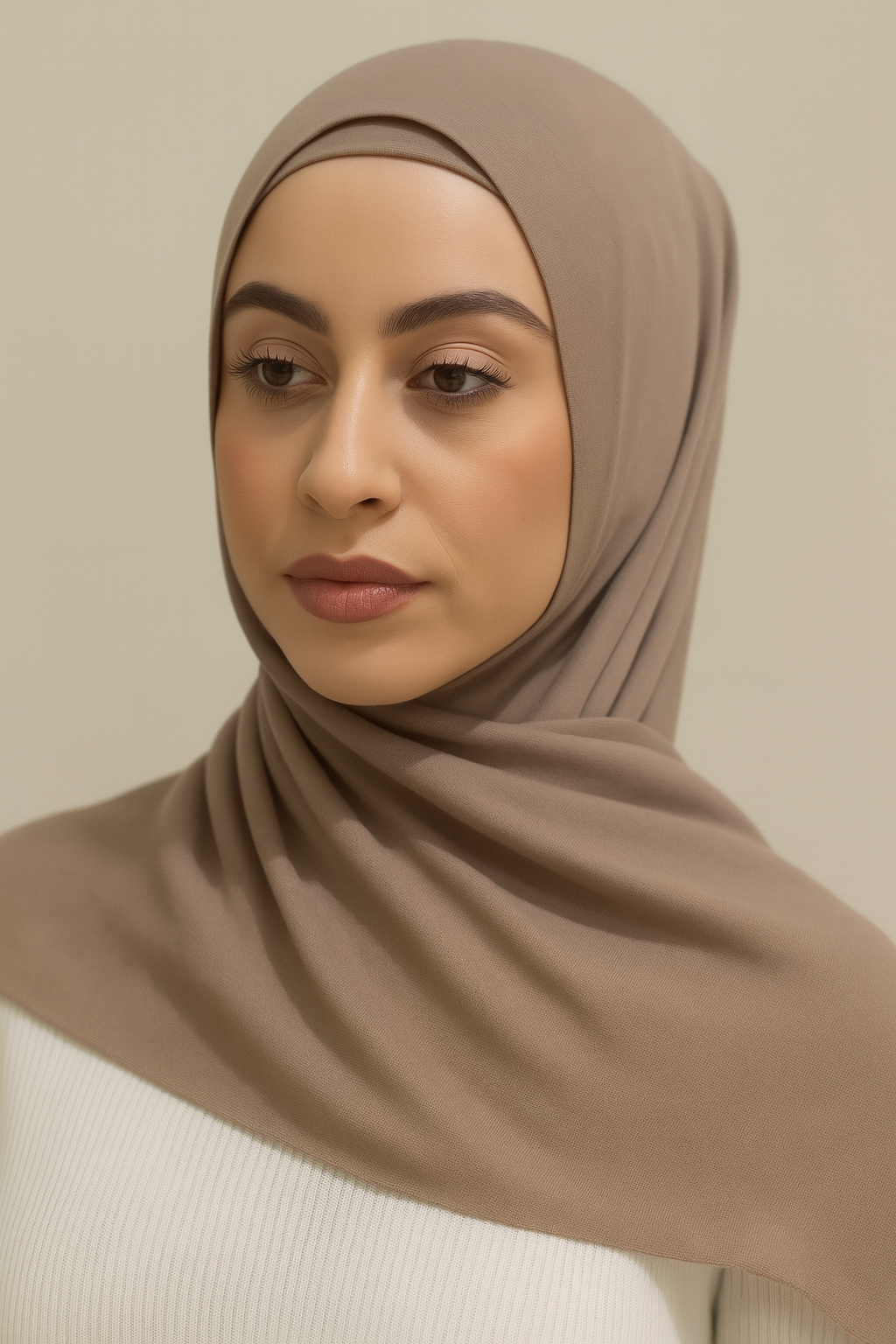 This set includes a Modal hijab, a smooth, breathable fit, paired with a coordinating undercap to ensure secure wear throughout the day. This is a single stitched modal hijab, meaning it sits much nicer on your head all day long.