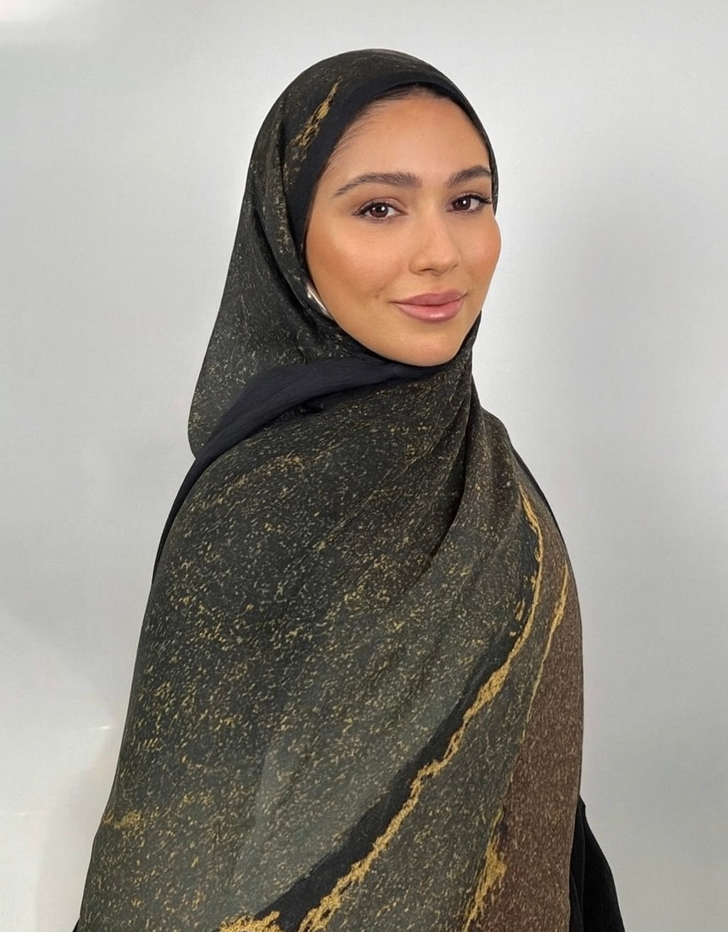 This printed hijab features a sophisticated design crafted from soft fabric, offering exceptional breathability and comfort.