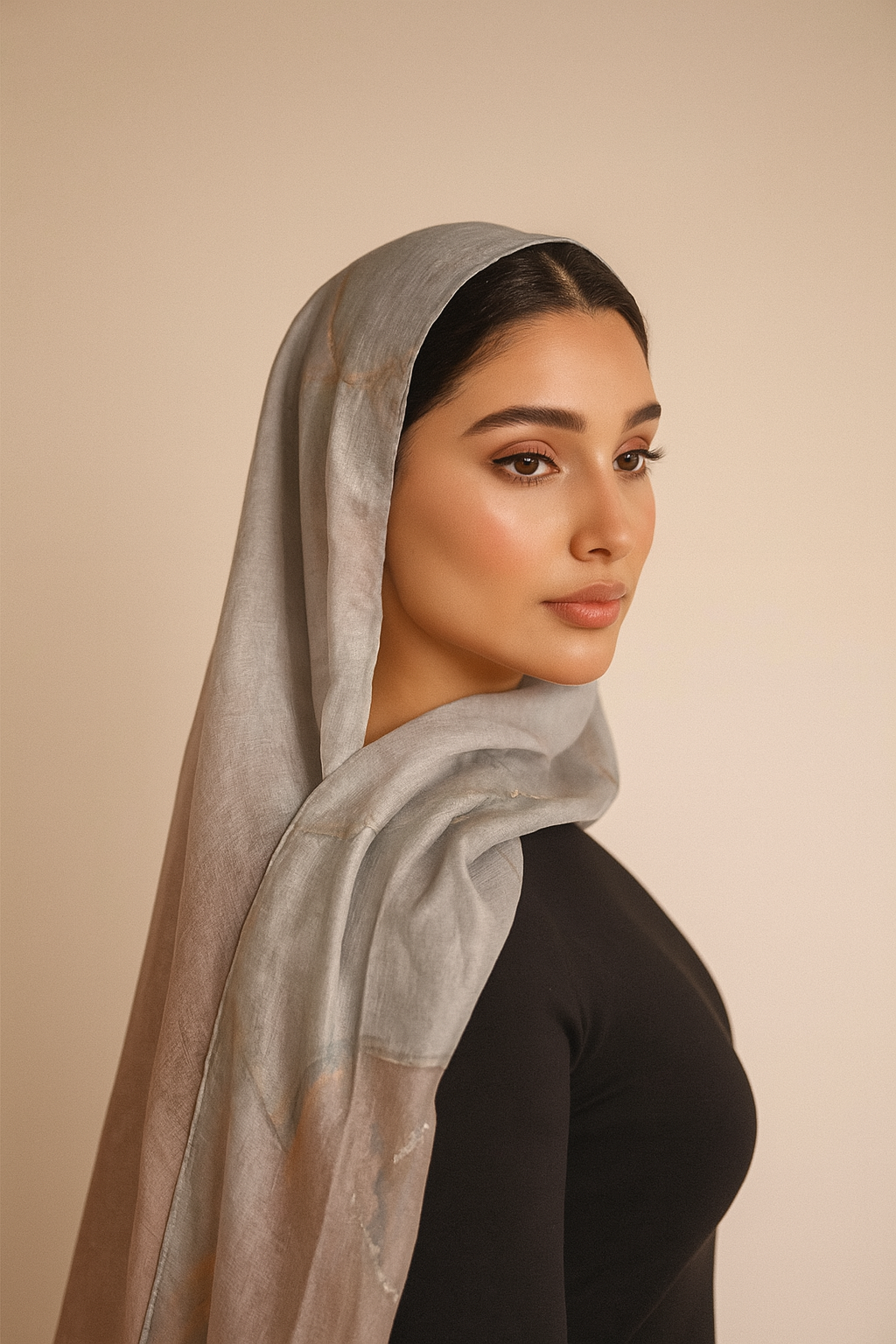 This printed hijab features a sophisticated design crafted from soft fabric, offering exceptional breathability and comfort.